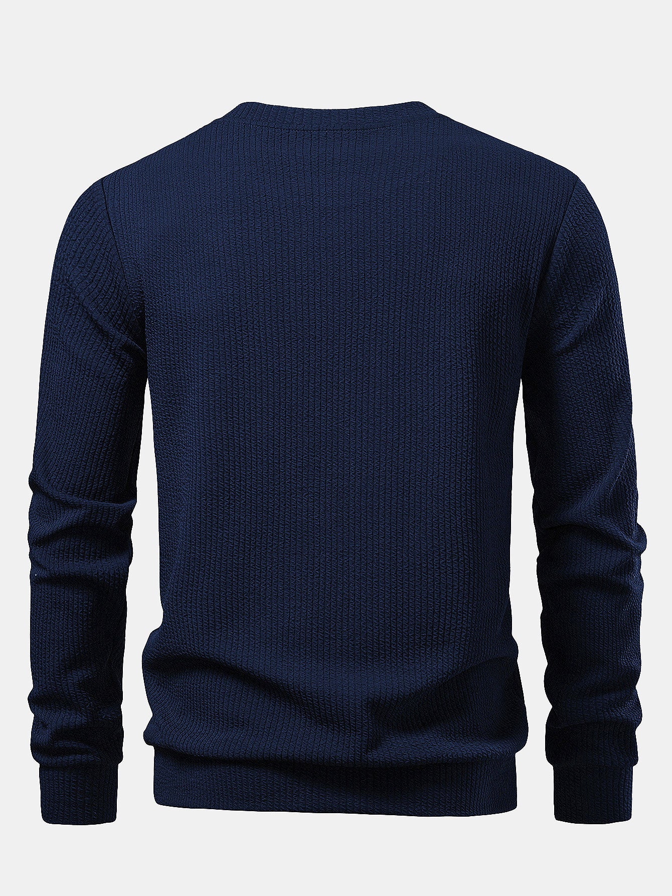 Mejora tu vestuario casual con esta sudadera de cuello redondo texturizada y elegante. Confeccionada con tela suave y de alta calidad, presenta un patrón texturizado único que añade dimensión y un toque sutil de sofisticación a tu look diario.
