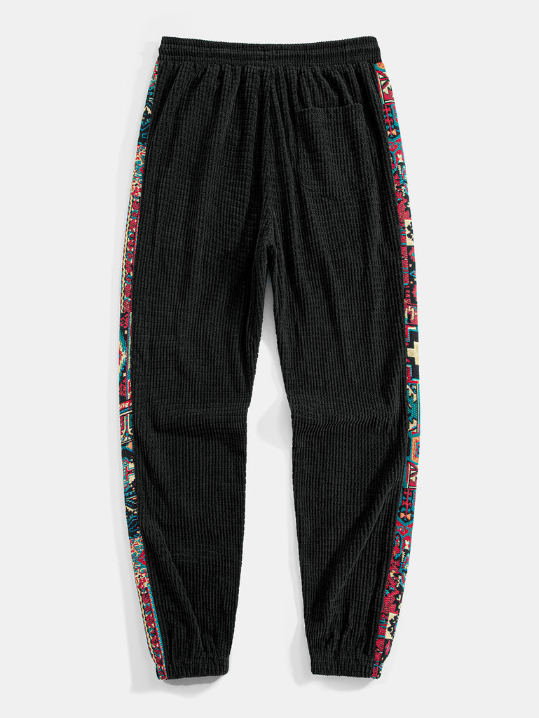 Ethnic Geometric Jacquard Patchwork Corduroy Pants