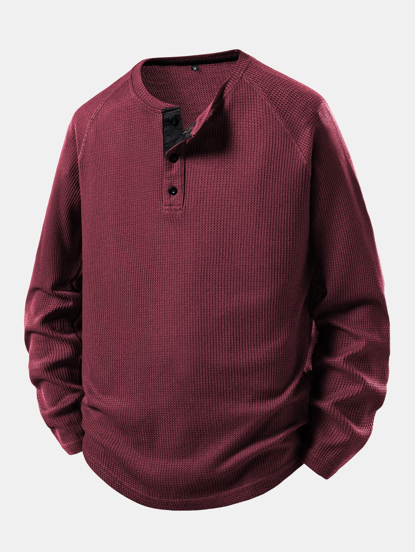 Langarm-Arc-Saum-Waffel-Henley-Shirt