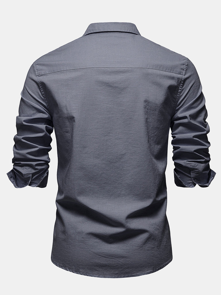Long Sleeve Linen Cotton Blend Shirt With Pocket