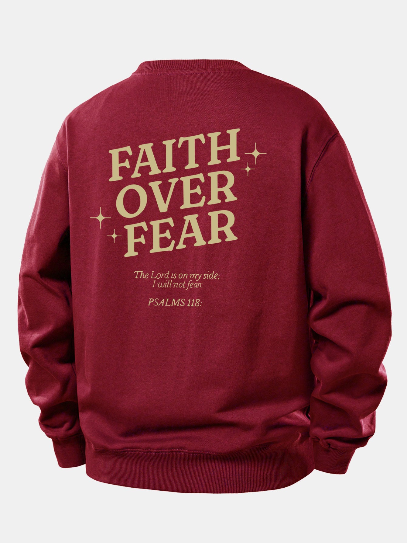 Featuring the uplifting ''Faith Over Fear'' slogan, this cozy sweatshirt is a daily reminder to stay strong and hopeful. Crafted from soft, breathable fabric with a relaxed fit, it offers ultimate comfort and effortless style — perfect for casual days, lounging, or faith-based gatherings.