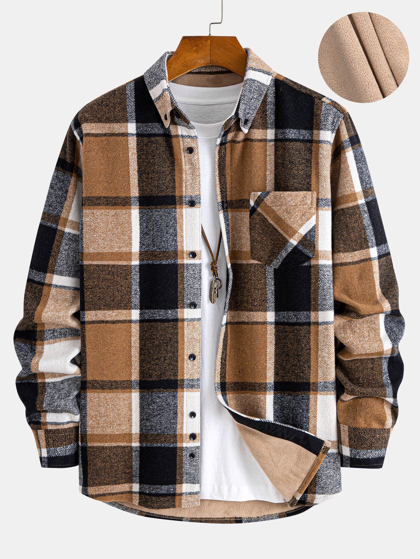 Flannel Fleece Lined Plaid Cotton Button Up Shirt